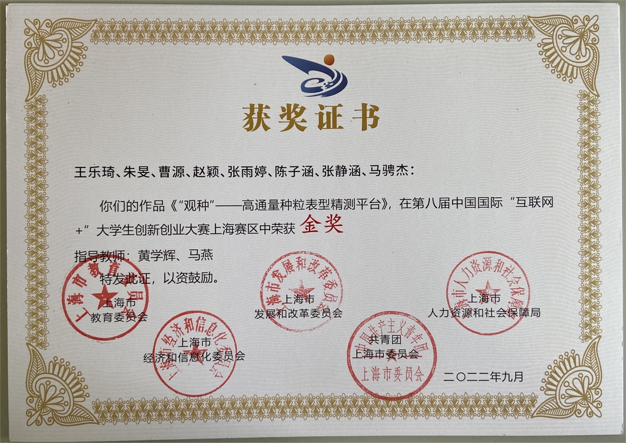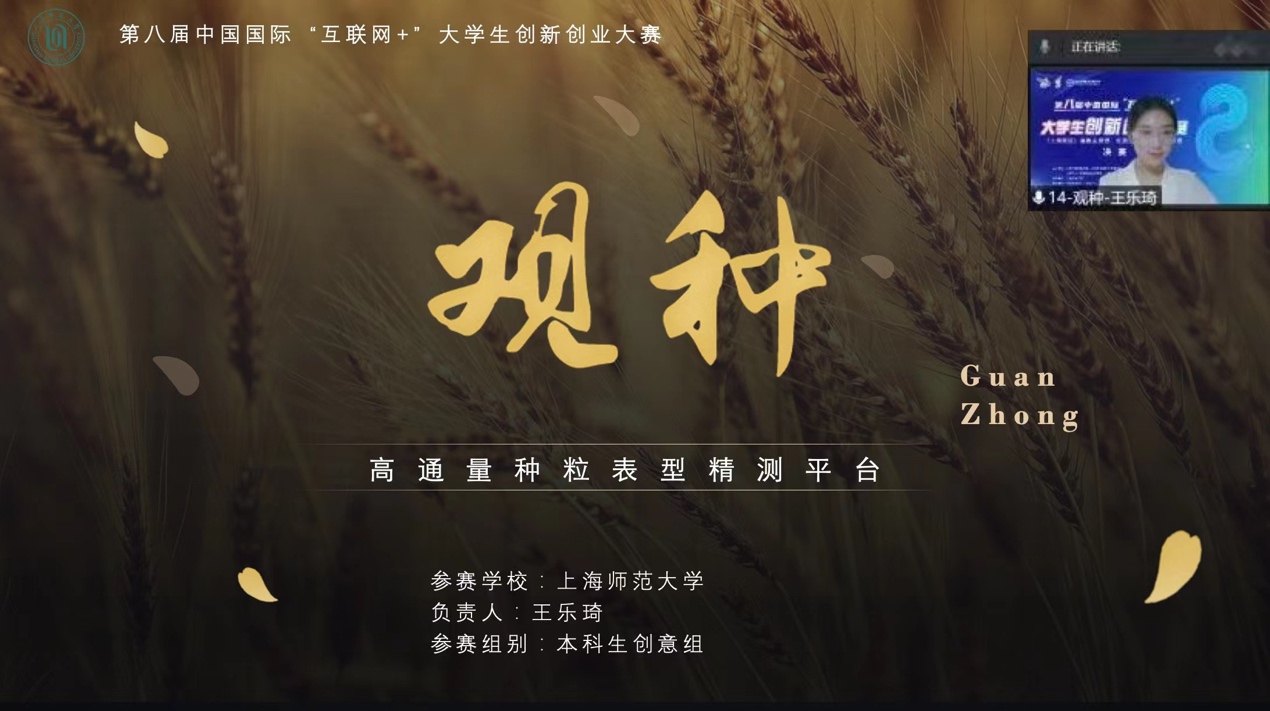 近日,第八届中国国际“互联网+”大学生创新创业大赛全国总决赛获奖名单公布,由我院黄学辉教授、信息与机电工程学院马燕教授共同指导,2019级生科创新班王乐琦团队的《“观种”——高通量种粒表型精测平台》突出重围,斩获国赛铜奖、上海赛区金奖。