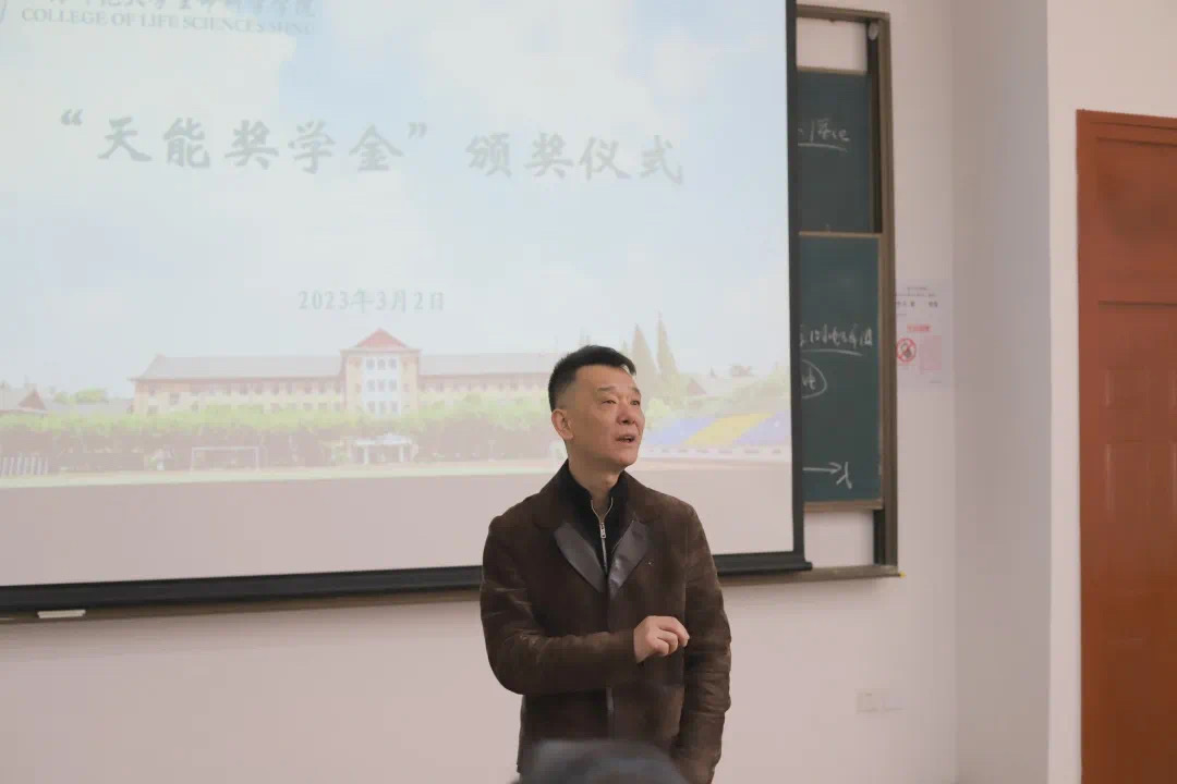 “天能奖学金”创立人孟诚卫董事长在仪式上致辞。他表示,设立天能奖学金旨在以评奖为形式,激发同学们的科研兴趣和科学激情,促进良好学风、培养科研氛围。他希望同学们将个人研究与国家发展相结合,注重自我成长,在时代前进的征程中有所担当、有所作为!