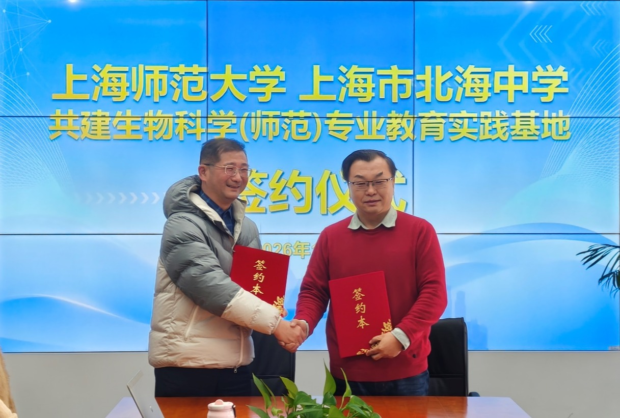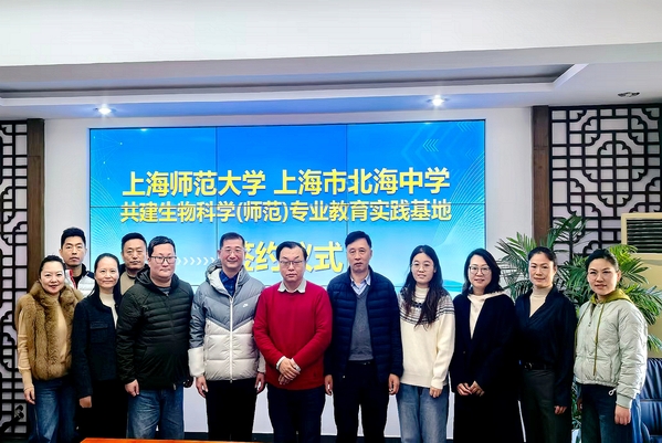 1月14日上午,OK138太阳集团与上海市北海中学在北海中学举行了生物科学(师范)专业教育实践基地签约仪式。OK138太阳集团院长戴绍军、副院长曹建国、生物科学(师范)专业负责人李慧,上海市北海中学校长郝晓刚,副校长杜云峰、洪捷,党支部副书记蔡扬,办公室主任李沁玉,政教主任张万强,教导主任郝静文,总务主任张光磊以及生物教师代表孙锐出席本次签约仪式。