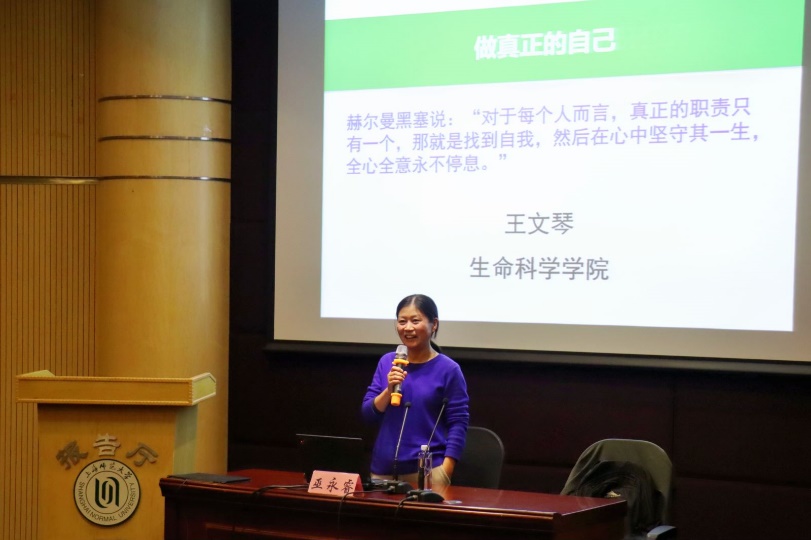 巫永睿研究员讲座结束后,王文琴教授作了主题为《做真正的自己》的分享,并为大家播放了展现两课题组近十年科研历程的视频《背后的故事》。王老师以“一万小时定律”为切入点,结合个人学习科研经历,进一步鼓励大家高效学习、不断尝试,引导同学们找到适合自己的科研道路。