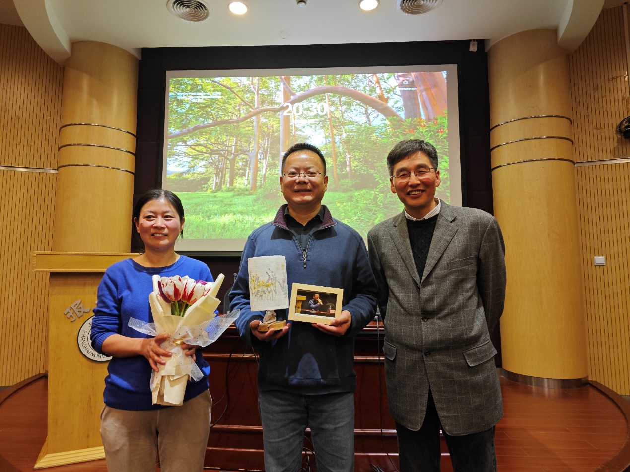 提问环节后,黄继荣教授为巫永睿研究员送上了现场打印的讲座照片。学生代表为两位老师送上学院张辉教授课题组种植的郁金香花束,以及学院园艺学堂学生制作的贴花台灯。