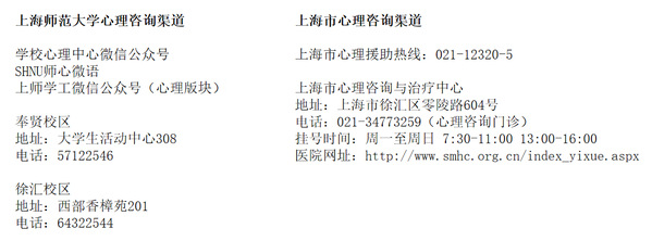 校内外心理支持资源一览: