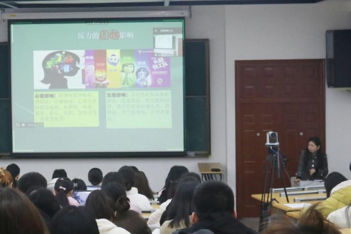 陈燕维老师首先通过具体事例向同学们讲解了应当如何正确看待压力。适当的压力有着积极的作用,压力过多或过少,都会产生负面的影响。同时,压力对人的心理和生理都有着巨大的影响,调节不当容易引发心理和生理上的多种功能障碍。学会根据症状划分压力等级,从而量化心理健康状况,及时进行调节或干预是一项重要的能力。
