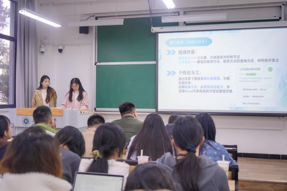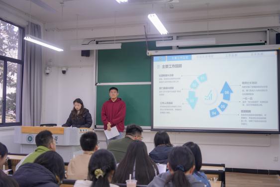述职汇报环节,各部门负责人立足本职,对上学期各项工作展开全面复盘与总结,既细致梳理工作成果,也深入提炼经验教训。汇报过程中,依托活动实景图片、详实工作数据等直观素材,全面展示了各部门一学期以来的工作亮点与实干突破,进一步明确了后续工作的开展思路与推进方向。与此同时,各负责人主动查摆部门存在的短板弱项,重点指出文件排版格式不统一、成员工作积极性欠缺、沟通不到位等突出问题,并提出了切实可行的整改举措与优化方案。