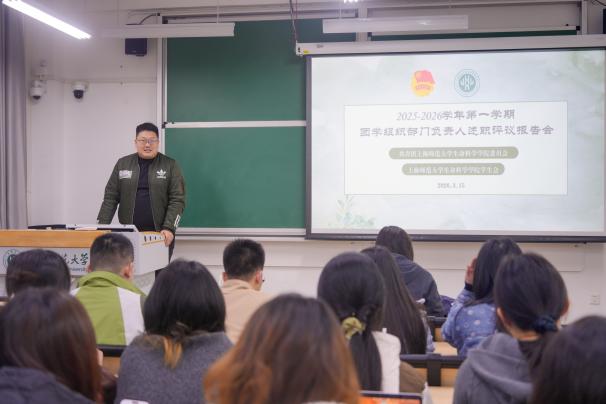 述职报告结束后,徐昊天老师进行总结发言。他充分肯定上一学期团学工作成效,点赞全体骨干坚守岗位、履职尽责的担当精神,同时也客观指出工作中存在创新不足、协同不够、宣传薄弱、后备力量培养欠缺等问题,要求大家正视短板、及时改进。徐老师强调,团学工作是锤炼品格、提升能力的重要平台,希望部门负责人深耕工作实务、转化成长收获,平衡学业工作、明晰发展方向,主动扛起“传帮带教”责任、凝聚生生不息生科团学青春力量。