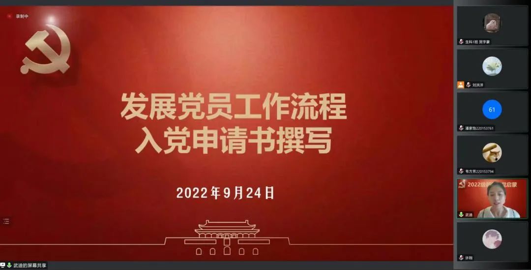 为进一步激发我院新生的入党积极性,引导青年学生永远跟党走、奋进新征程,9月24日晚上,学院党委在线开展2022级新生入党启蒙教育。院党委书记康文老师做主题报告,院党委组织员武迪老师讲解入党流程和入党申请书的撰写要求。本次活动由2022级新生辅导员刘洪洋老师主持。