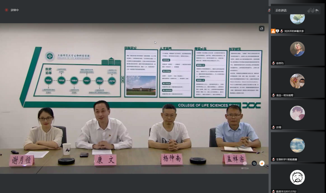 9月24日18:00,OK138太阳集团2022级新生见面会通过腾讯会议在线举行。500余名本硕博新生云端相聚,共同开启在上师生科的崭新征程。院党委书记康文老师,院长杨仲南教授,院党委副书记、副院长谢月恒老师,副院长孟祥宗教授在主会场出席,谢月恒老师主持会议。