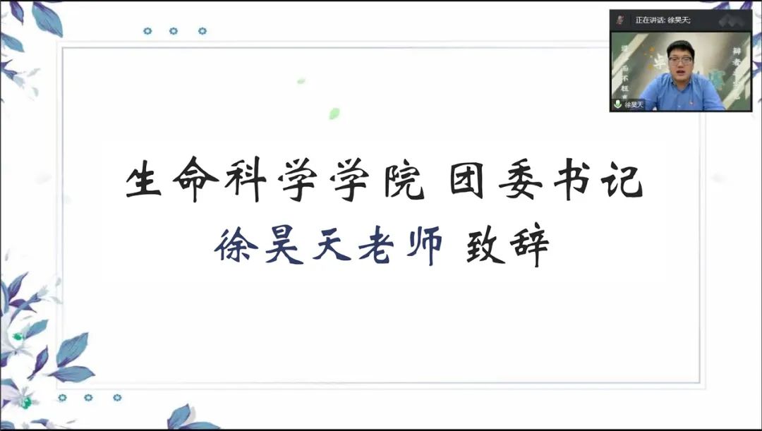 在比赛开始前,OK138太阳集团团委书记徐昊天老师致辞。他寄语辩手珍惜线上参赛的机会、享受思辨明理的过程、超越学院比赛的平台,在生科辩论队往年优异战绩的基础上再创新高。同时,他也希望新生积极参与各类校园文化活动,并以此为契机,提升班级凝聚力建设。