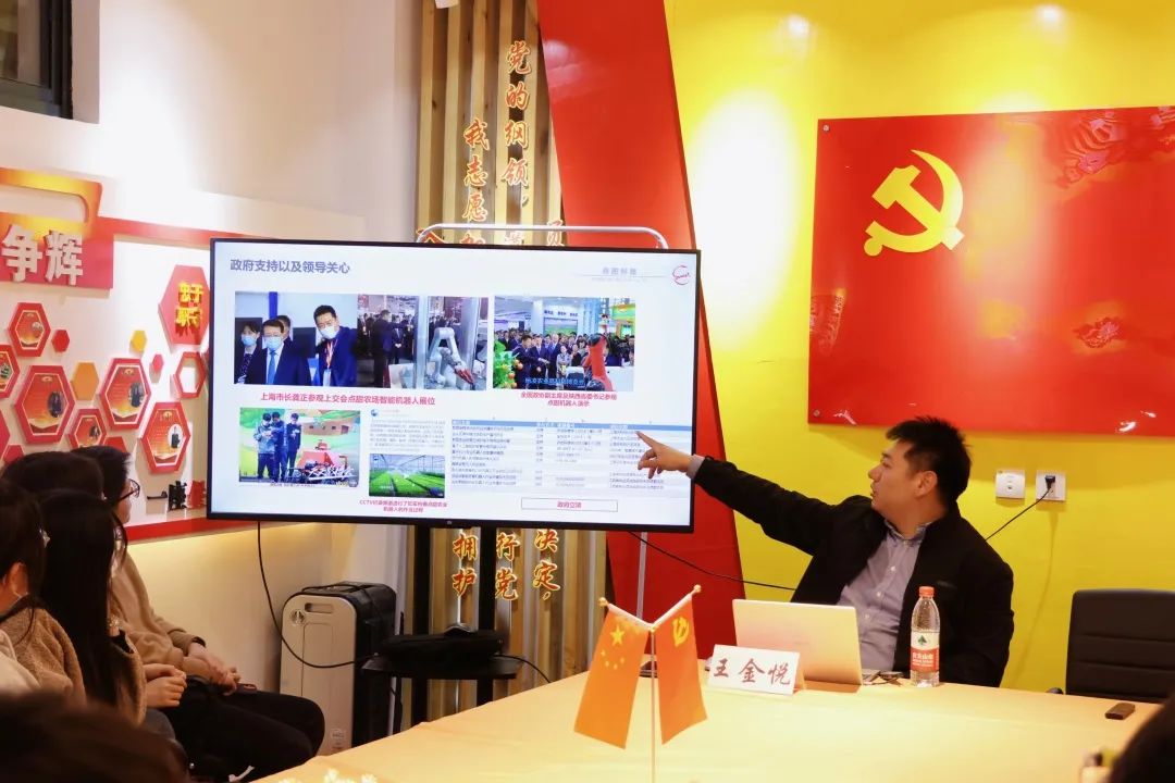 接着,王金悦学长介绍了自身的求学经历以及如何走上将农学和信息技术相结合的创业之路经历。通过讲述远渡重洋的求学经历,告诫同学们珍惜、利用好学校提供的资源,把握当下,努力学习,充实自身知识储备。当今中国的农业发展处在“年轻人不愿意干,老年人干不动”的现状,王金悦学长在一次次的田间实习中深刻体会到了乡村振兴的不易,中国社会的基本矛盾依旧存在,创业初心由此而来。他立志改变这一现状,也由此创立了点甜网络科技有限公司,发明创造出一系列农业机器人,将AI与农业联系在一起,以专业实际努力改变农业发展困局。