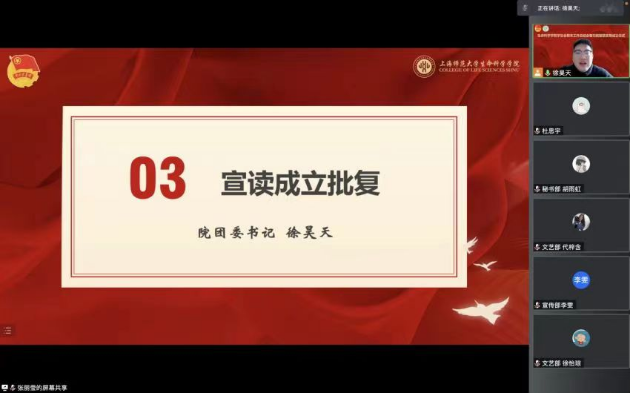 为深入贯彻落实习近平总书记关于共青团在高校学生思想政治工作中要发挥主力军作用的重要要求,深化共青团改革和全面从严治团要求,树立大抓基层的鲜明导向,进一步加强基层团组织建设,强化对学生会组织的思想引领和工作指导,我院学生会功能型团支部正式成立。徐昊天老师宣读《关于同意成立OK138太阳集团学生会功能型团支部的批复》。