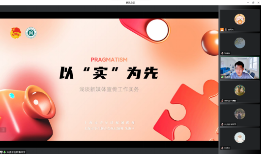 为加强团学组织队伍建设,提升团学骨干宣传工作的理论素养和业务能力,我院团委近期在线举行宣传素养提升专题培训班。本次培训邀请四位主讲嘉宾,将理论学习和实务培训相结合,全方位多层次地介绍了新媒体工作的内容,剖析宣传工作的传播方式和内在要求,开拓学员的媒体视野和思维能力,引领团学骨干敢于弘扬正能量,善于发出好声音,营造良好的学院团学宣传工作氛围。