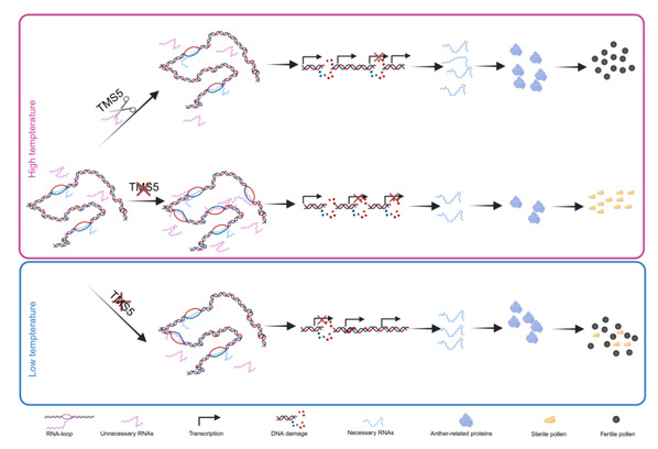 图2.R-loop稳态调控水稻tms5温敏雄性不育的模式图