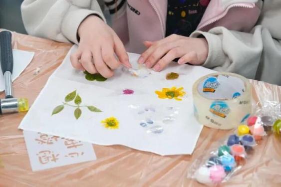 春深四月,花叶正好。4月15日下午,奉贤校区第三教学楼113教室举办了一场植物拓染心理健康体验活动。现场没有键盘敲击声与翻书声,取而代之的是减震锤与植物、布料碰撞出的有节奏的敲击声。全校40多位同学参与其中,在沉浸式的动手过程中感受自然与艺术的疗愈力量。