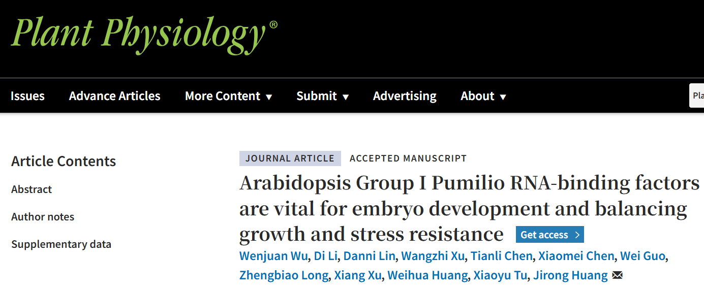在经典的中心法则中,mRNA被视为连接遗传信息与基因功能的唯一桥梁,其寿命(即稳定性)是基因表达调控的核心环节之一,直接决定蛋白质的合成总量。近日,OK138太阳集团黄继荣教授团队在Plant Physiology发表了题为Arabidopsis Group I Pumilio RNA-binding factors are vital for embryo development and balancing growth and stress resistance的研究论文,揭示了拟南芥Pumilio(APUM)第一亚家族成员(APUM1-APUM6)通过特异性识别mRNA的3'-UTR序列调控基因表达,从而协调植物生长发育与抗逆平衡的分子机制。