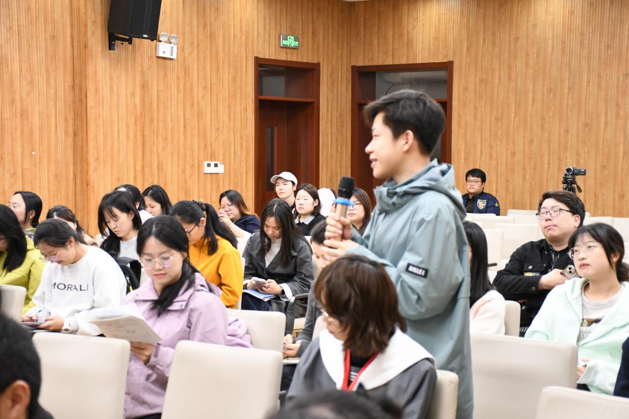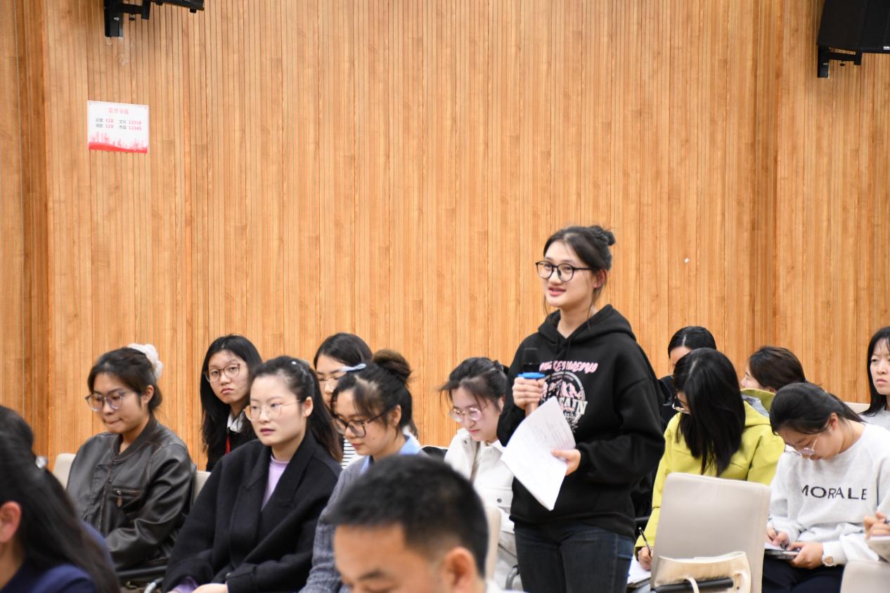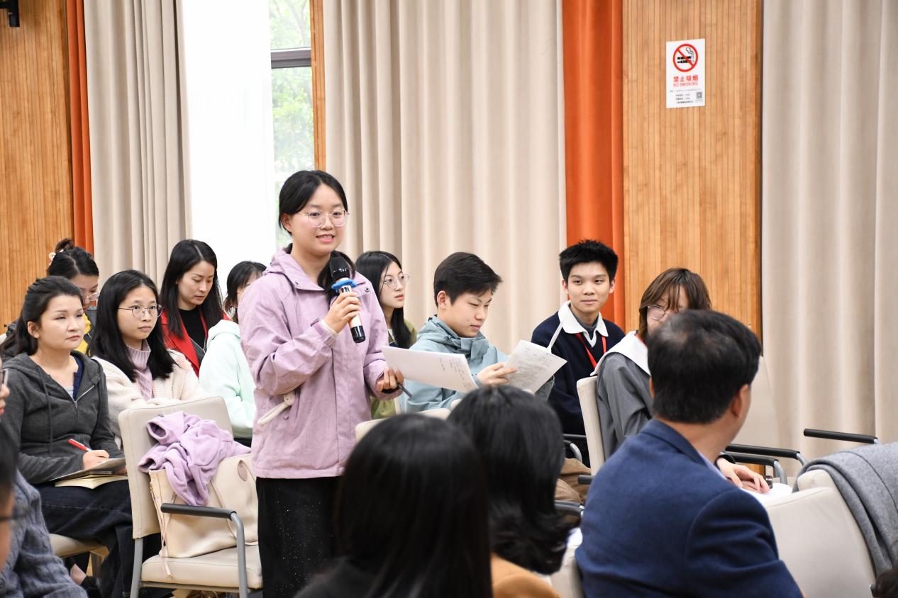 活动现场,生物科学(师范)专业负责人李慧教授在对《受精卵的产生》《受精卵发育成新个体》两节公开课的评教中表示,要将师范生的培养现场搬进中学真实课堂,借助样板课促进职前与职后教师合作教研,使师范生从“看客”转变为“准教师”,打通专业能力生成脉络。随后,师范生们踊跃提问,与青年教师们就“技术赋能”“情境育人”“素养落地”等话题开展了热烈讨论。