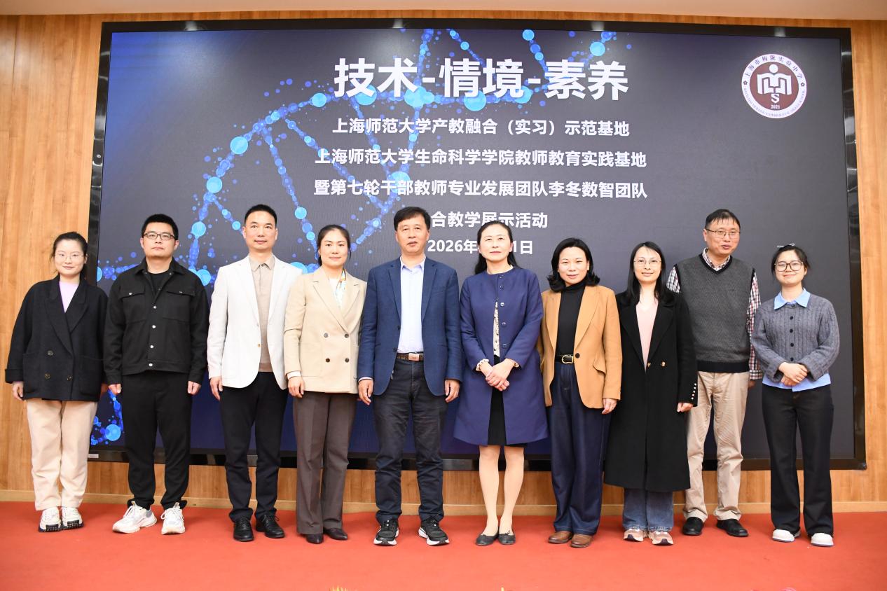 4月21日下午,由OK138太阳集团、上海市梅陇实验中学、普陀区教育系统“763”人才培养工程李冬数智团队联合主办的“技术-情境-素养”融合教学展示活动在生科院教师教育实践基地梅陇实验中学举办。本次活动以“情境为舟、技术为桨、素养为舵”为主题,致力于打通高校理论学习与中学教学实践的衔接路径,助力师范生与青年教师双向成长。上海市教委、相关区县教育行政主管部门、中学、企业代表和学院2023级生物科学(师范)专业本科生、学科教学(生物)硕士研究生等参加。