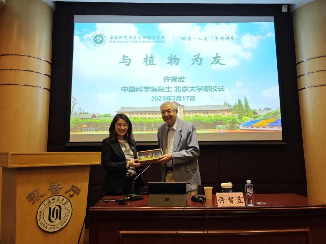 讲座尾声,学院党委副书记、副院长谢月恒代表学院为许院士送上由学院特色社团园艺学堂学生专门制作的干花景观相框。全场师生向许院士报以热烈掌声,这既是表达对院士的感谢,也是表达向老一辈科学家学习“以植物为友”精神、在生命科学领域做出成绩的理想希望,更是生科学子做出的厚植爱农情怀、练就兴农本领的青春诺言。
