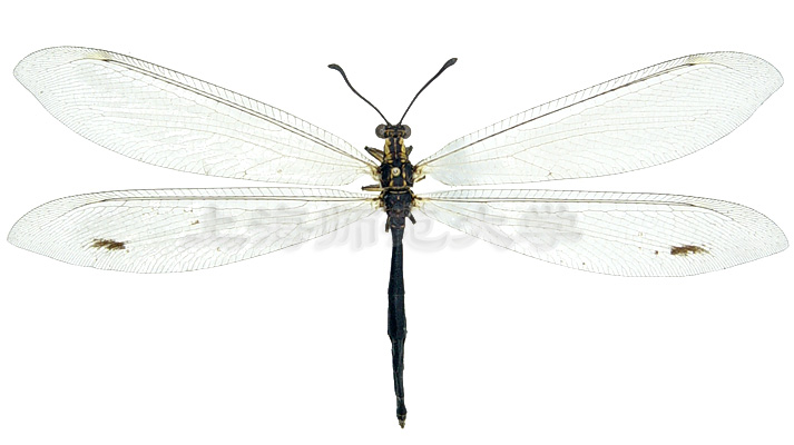 条斑次蚁蛉体长约32mm。雌虫后翅具1个黑斑,雄虫后翅无斑。