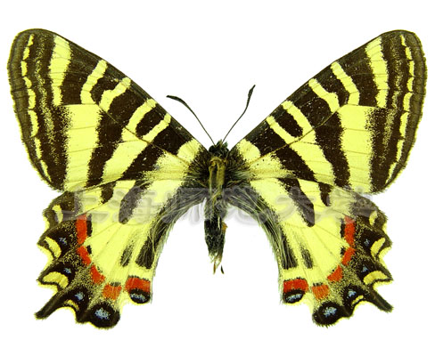 中华虎凤蝶翅展约49~55mm。翅黄色,具黑色、红色斑纹。是国家II级保护动物。